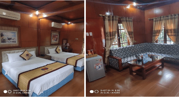 – Phòng loại nhà gỗ. Phòng có cửa sổ hướng núi và sân vườn, diện tích khoảng 30- 35m2 (2 giường 1m4 * 2m) số lượng 3 phòng.