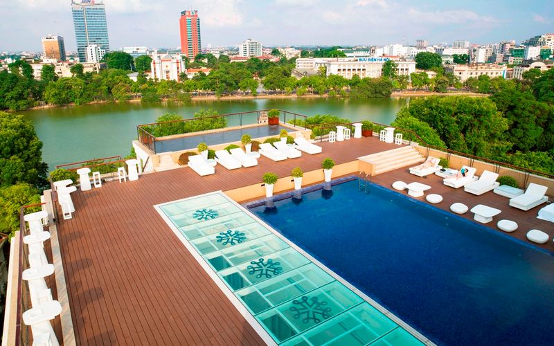 Khách sạn Apricot là nơi duy nhất tại Hà Nội có bể bơi nằm trên tầng cao nhất của tòa nhà. Từ đây, du khách có thể phóng tầm mắt ôm trọn khung cảnh thơ mộng của Hồ Hoàn Kiếm.
