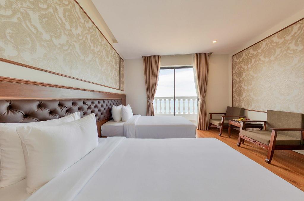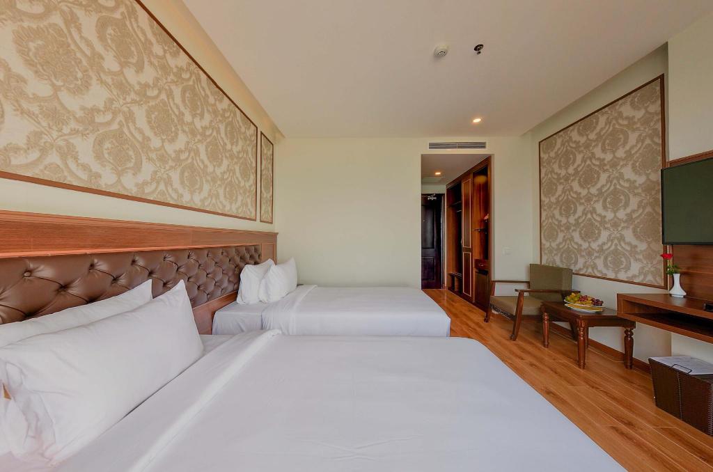 Với thiết kế thanh lịch, tao nhã, không gian rộng rãi, phòng Deluxe là lựa chọn lí tưởng dành cho cả khách du lịch hoặc công tác ở thành phố biển xinh đẹp. Ban công phòng Deluxe mang đến một tầm nhìn toàn cảnh thành phố rực rỡ lúc bình minh hay lung linh sắc màu khi màn đêm buông xuống.