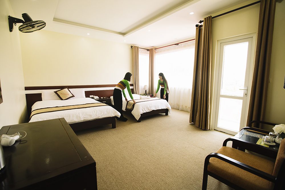 Ngoài ra đội ngủ nhân viên khách sạn khoa thanh mai châu được đào tạo chuyên nghiệp ,nhiệt tình, chu đáo mà khách hàng hài lòng.