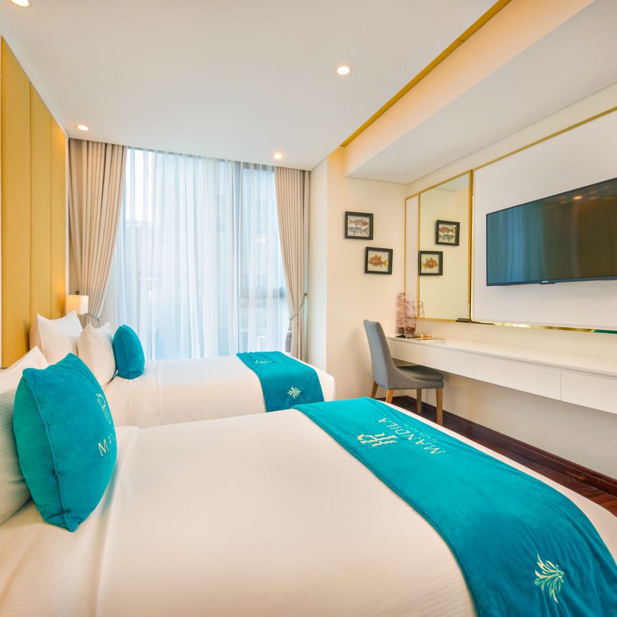 Tọa lạc ở vị trí đắc địa- đường Võ Nguyên Giáp, Mandila Beach Hotel có tầm nhìn ôm trọn bãi biển Mỹ Khê – một trong những bờ biển hấp dẫn nhất trên thế giới với bãi cát trắng, làn nước trong xanh và vẻ đẹp tuyệt diệu của thiên nhiên nhiệt đới. Khách sạn được xây dựng vào năm 2025, lối thiết kế kiến trúc mang phong cách hiện đại, tôn vinh sự tối giản tinh tế và gam màu hài hòa mang đến cho du khách trải nghiệm khó quên. Khách sạn có hệ thống 130 phòng nghỉ cao cấp và 02 căn hộ, hầu hết đều có tầm nhìn ra bãi biển tuyệt đẹp. Bên cạnh đó, khách sạn còn sở hữu các dịch vụ tiện nghi hiện đại như phòng tập thể dục, hồ bơi vô cực, quầy bar tầng thượng cũng như khu vực spa chăm sóc sức khỏe