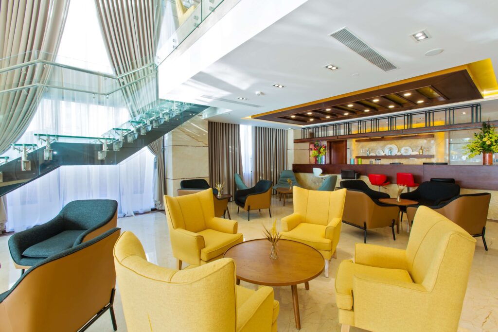 Bên cạnh đó, khách sạn còn sở hữu các dịch vụ tiện nghi hiện đại như phòng tập thể dục, hồ bơi vô cực, quầy bar tầng thượng cũng như khu vực spa chăm sóc sức khỏe.