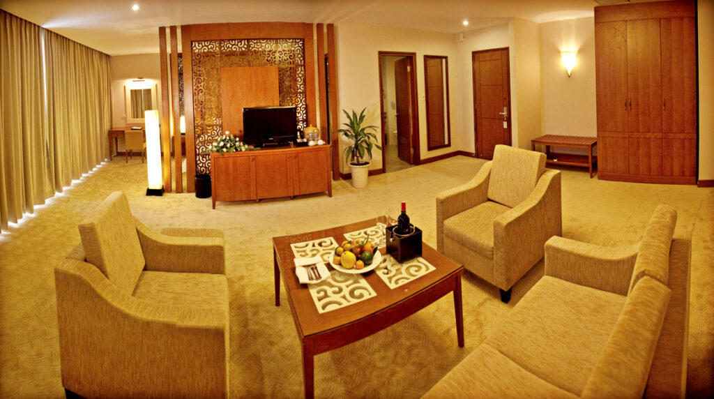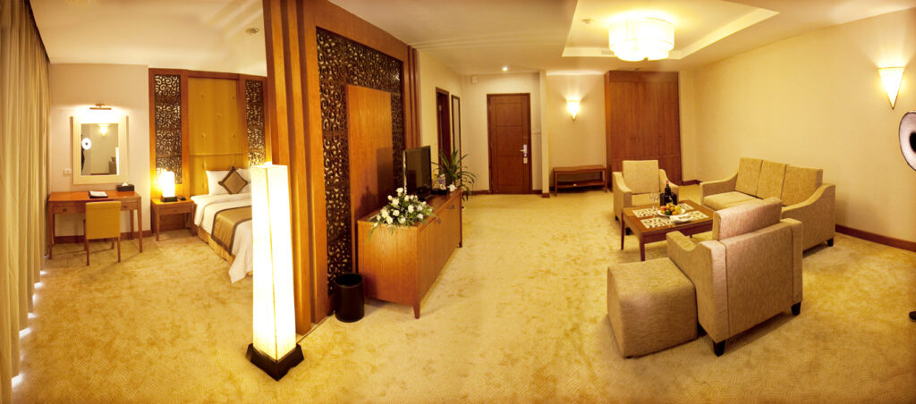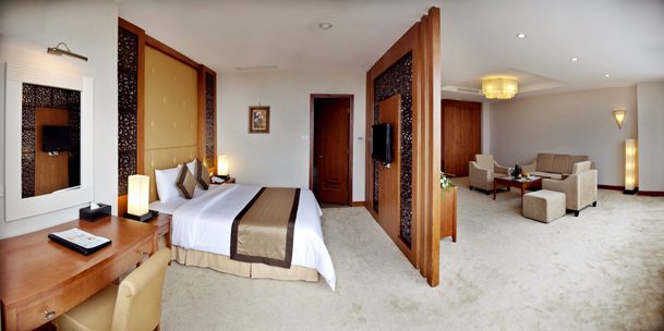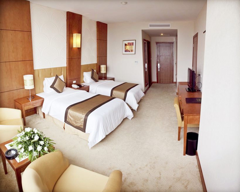 Khách sạn có 180 phòng đẹp, có trang bị máy lạnh, bàn, quầy thức ăn nhẹ, ban công.