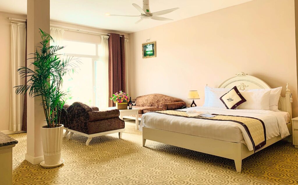 Du khách đến với khách sạn Ngọc Phát vừa có thể nghỉ dưỡng trong khung cảnh nên thơ, vừa tận hưởng được những tiện nghi hiện đại mà khách sạn cung cấp theo tiêu chuẩn 3 sao cùng với đội ngũ nhân viên thân thiện, nhiệt tình và chuyên nghiệp.