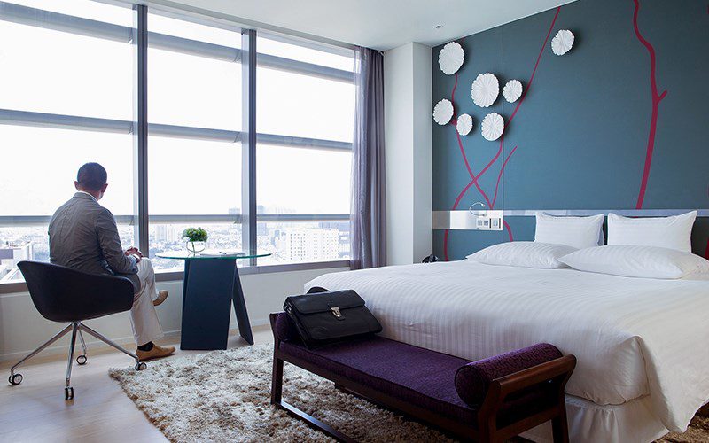 – Hạng Executive: Số lượng 55 phòng nằm ở vị trí cao hơn từ tầng 25 đến tầng 29. Mỗi phòng có diện tích 35m2. Nội thất, tiện nghi nổi bật gồm 01 giường cỡ lớn/02 giường đơn, bồn tắm nằm, máy pha cà phê, thảm tập Yoga, tạ tập tay, bàn ủi đồ. Phòng có thể kê thêm giường phụ.