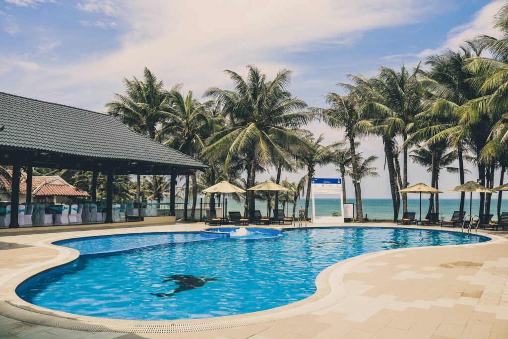 Hồ bơi view biển tọa lạc ngay vị trí hướng biển, rất thuận tiện cho du khách sau khi tắm biển có thể “tắm” thêm một lần nữa tại hồ bơi. Ngoài ra, không gian hồ bơi cũng thích hợp cho các buổi tiệc ngoài trời lãng mạn hoặc làm không gian chụp ảnh tuyệt vời cho du khách.