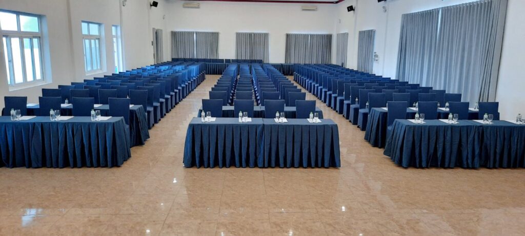 Thiết bị phòng họp bao gồm màn chiếu, máy chiếu, flipchart, hệ thống âm thanh hiện đại, bục diễn thuyết, Wifi. Ngoài ra resort cung cấp giấy, bút, tập hồ sơ, nước suối, teabreak (bao gồm: bánh ngọt, trà, cà phê, sữa chua, nước trái cây) và những yêu cầu đặc biệt khác.