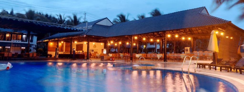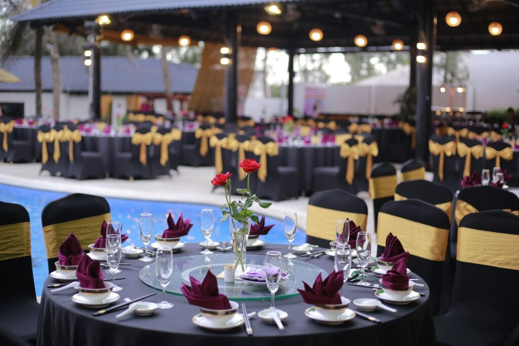 Hồ bơi view biển thoáng rộng, thích hợp cho các tiệc cưới, gala dinner ngoài trời lãng mạn và cũng rất sôi động. Không gian mở tự do nên có thể linh động bố trí chỗ ngồi theo yêu cầu của khách. Ngoài ra, hồ bơi cũng là điểm làm sân khấu tuyệt vời cho các bữa tiệc đêm.