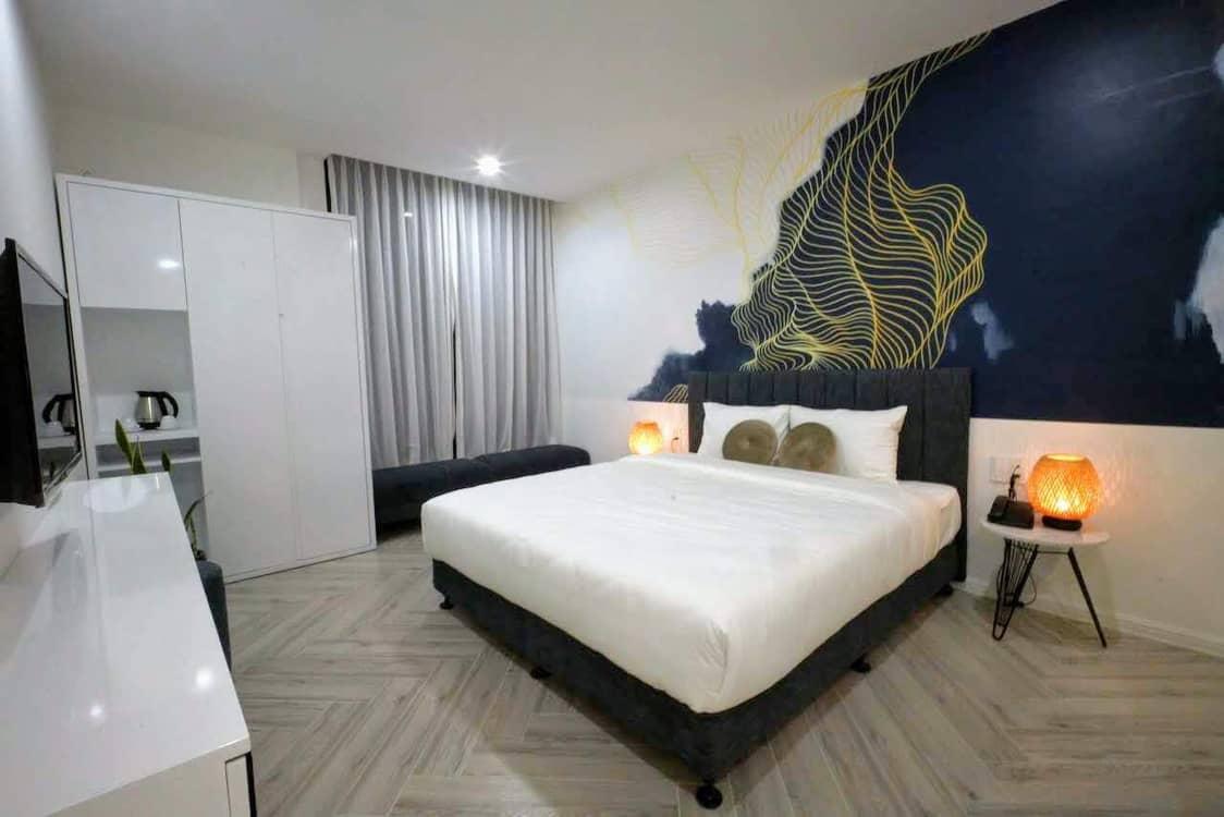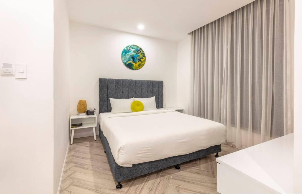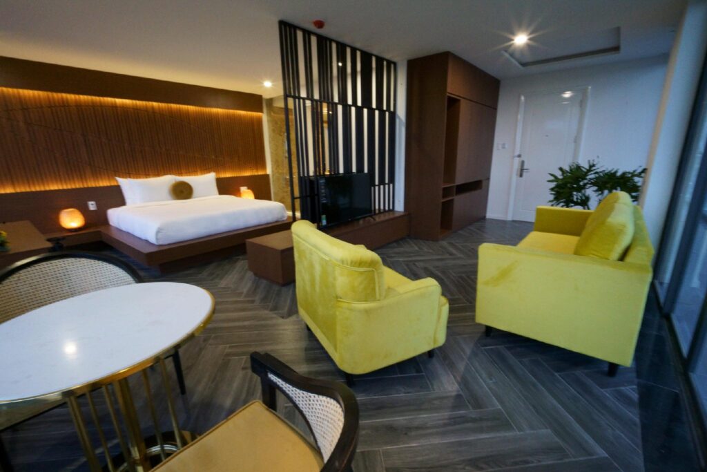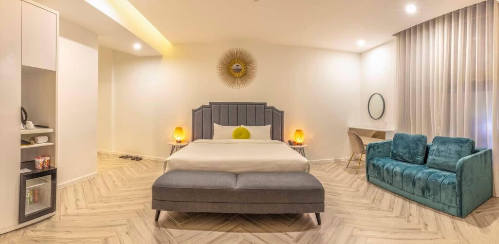 Phòng có diện tích khoảng 22m2, gồm có 1 giường king lớn. Phòng thích hợp cho 2 người lớn và 1 trẻ em. Phòng có cửa sổ mở nhưng không có hướng nhìn cảnh quan.