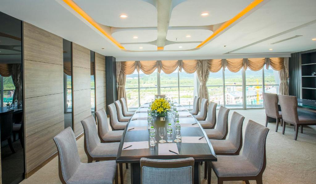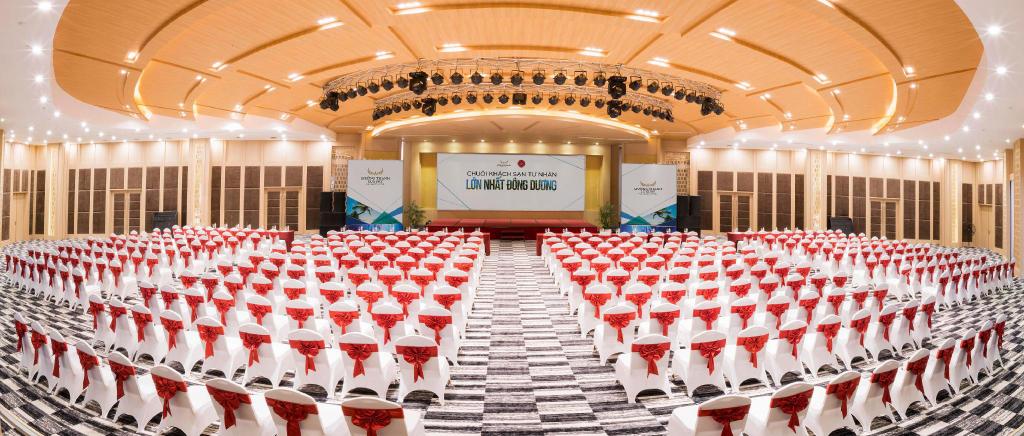 Phòng tiệc, hội nghị hiện đại với sức chứa từ 40 – 600 khách. Khu vui chơi giải trí, chăm sóc sức khoẻ, Spa, Karaoke, Bar – Café và Hồ bơi thông minh, sân tennis …