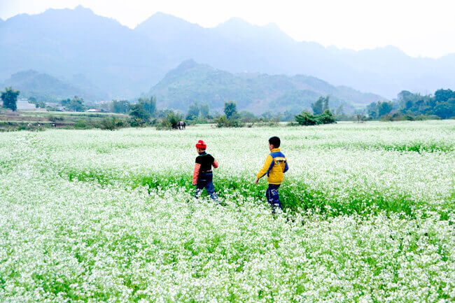 Thời điểm đầu đông của những ngày mưa tháng 11, 12 cũng chính là lúc hoa cải trắng nở rộ khắp nẻo đường Mộc Châu, tạo thành một bức màn màu trắng tinh khôi, nhìn đẹp tựa bức họa của thảo nguyên xanh mát. Mộc Châu mùa hoa cải được ví như “Đà Lạt của miền Bắc” vào mùa này.