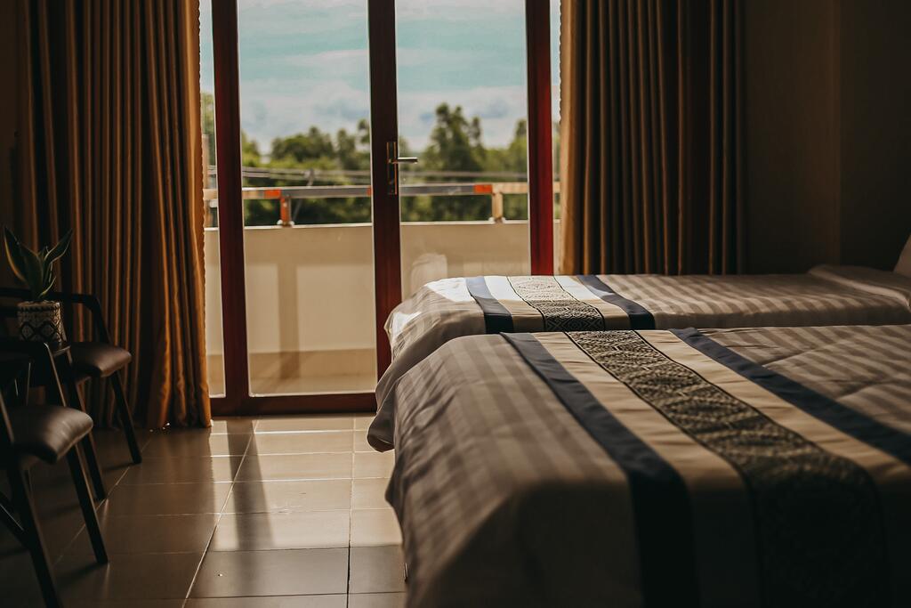 Phòng 1 giường đôi và 1 giường đơn  dành cho 3 khách, rộng 21 m2, thoáng mát đầy đủ tiện nghị, nước suối, Wifi và bãi đậu xe miễn phí.