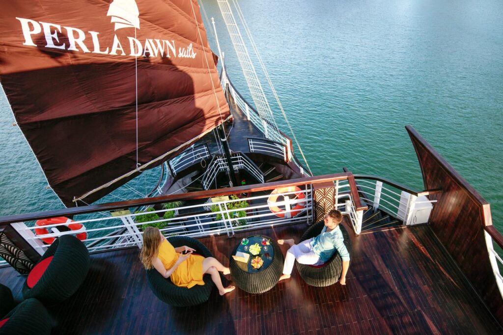 Du thuyền Perla Dawn là thành viên mới nhất của đội tàu La Fairy Sails chuyên dùng cho những du khách thích tìm hiểu, khám phá một hành trình tàu biển mới tại Vịnh Lan Hạ.