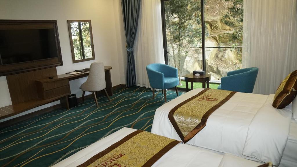 Phòng Phoenix Deluxe với phong cách đơn giản và thanh lịch diện tích lên tới 40m2 sẽ làm bạn thư giãn với tầm nhìn hướng ra thác nước,cây xanh, với thiết kế hai giường đơn riêng biệt.