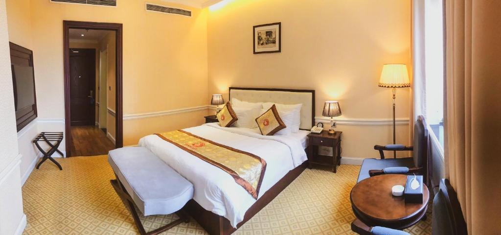 Phòng Phoenix Standard được thiết kế theo tiêu chuẩn quốc tế với diện tích 30m2 có tầm nhìn thoáng hướng ra sông phòng có 01 giường lớn King-size thích hợp cho các khách gia đình hoặc khách đi công tác,trong phòng có hoa tươi nước khoáng trà cà phê miễn phí.