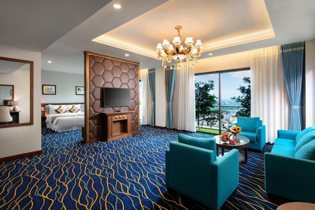 Phòng Phoenix VIP  không gian thoáng, tầm nhìn đẹp, diện tích lên tới 70m2 ban công hướng ra ngoài.Trải nghiệm được ngắm toàn cảnh thành phố lung linh, ánh đèn tráng lệ sẽ khiến du khách không thể quên.Trong phòng được thiết kế và bố trí những trang thiết bị cao cấp sang trọng bao gồm ba khu sinh hoạt: góc làm việc, nơi tiếp khách và phòng ngủ, khu vực phòng tắm rộng với vòi hoa sen ấp lực cao, bồn tắm rộng sang trọng.