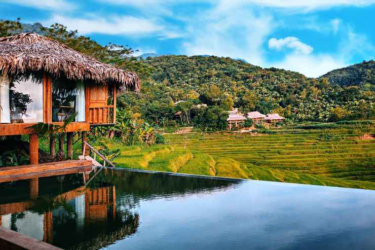 Phòng Bungalow Deluxe Valley view thung lũng ruộng bậc thang, phòng có giá 1,860,00/đêm/phòng. Phòng rất phù hợp với các cặp yêu nhau hưởng tuần trăng mật. View nhìn ra thung lũng và bể bơi tuyệt đẹp với thiết kế nội thất bằng gỗ tự nhiên và tre không gian hứng sáng tạo cảm giác thỏa mái yên bình.