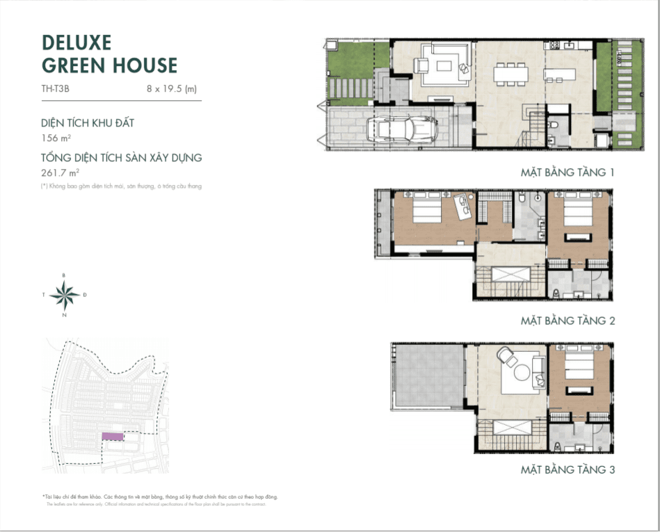 • Town House có diện tích: 6*17,5m2 – 7*19,5m2- 8*19,5m2