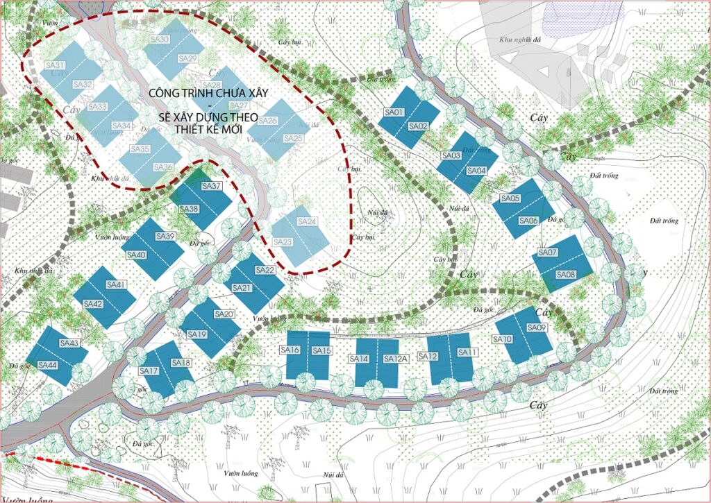Tình trạng công trình: Hoàn thiện giai đoạn thiết kế thi công hạng mục PôngKhim Clubhouse, đang hoàn thiện xây dựng hạng mục Bungalow Rừng Luồng