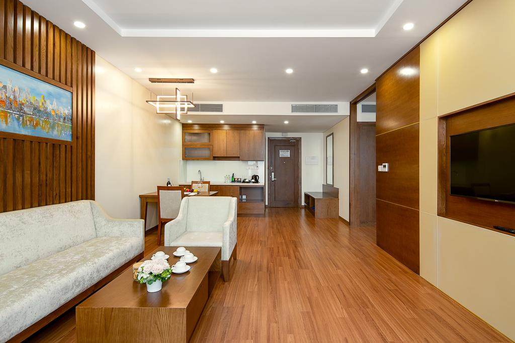 - President Suite: 232m2 bao gồm 1 phòng khách có sofa, 1 bếp và 3 phòng ngủ (2 President Double hướng biển, giường Queen (1,8m×2m) và buồng tắm; 1 phòng Premier với giường Queen (1,8m×2m) và buồng tắm), ban công rộng hướng biển, sàn bằng gỗ…