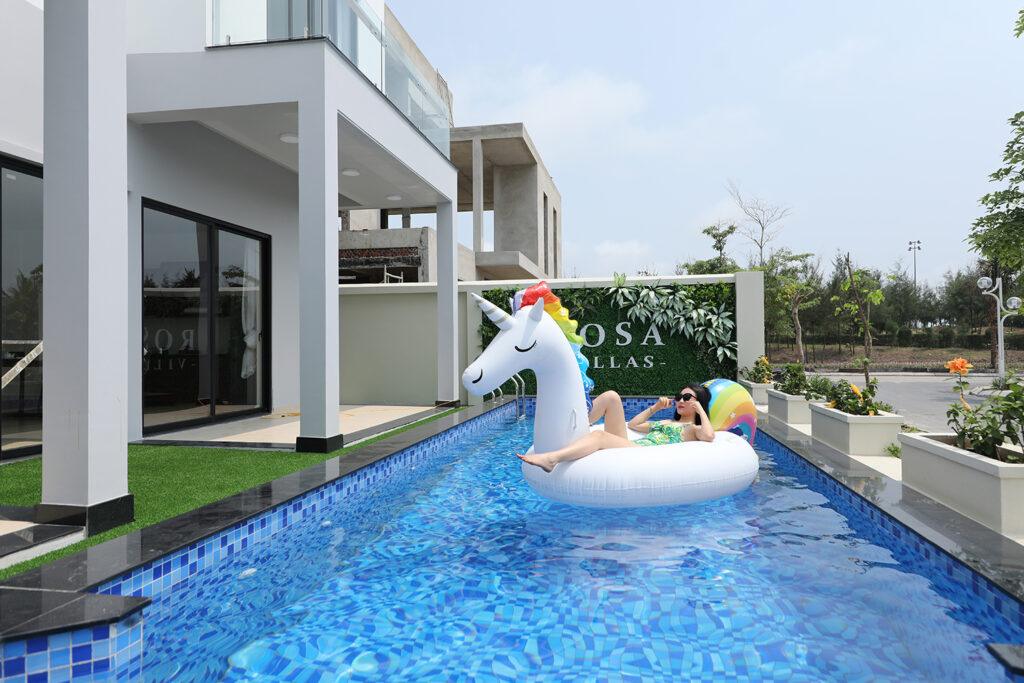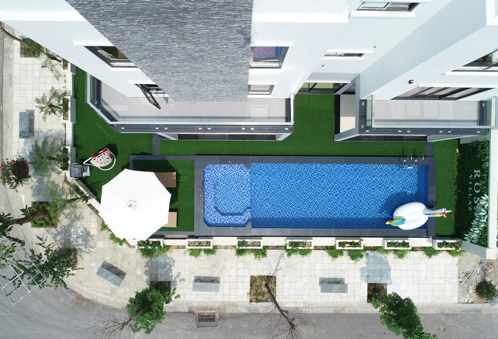 • Bể bơi lớn trong khuôn viên villa thoải mái bơi lội bất chấp thời tiết