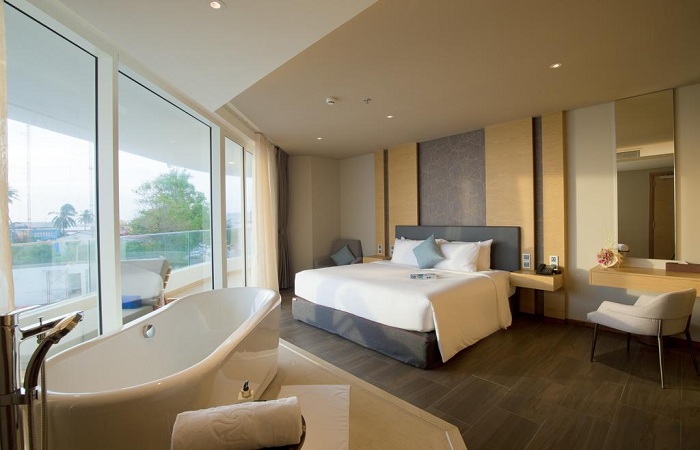 – Premium Ocean View: Phòng có diện tích 33m2, được bố trí 01 giường đôi hoặc 02 giường đơn. Phòng nằm ở tầng cao của khách sạn, hướng biển.