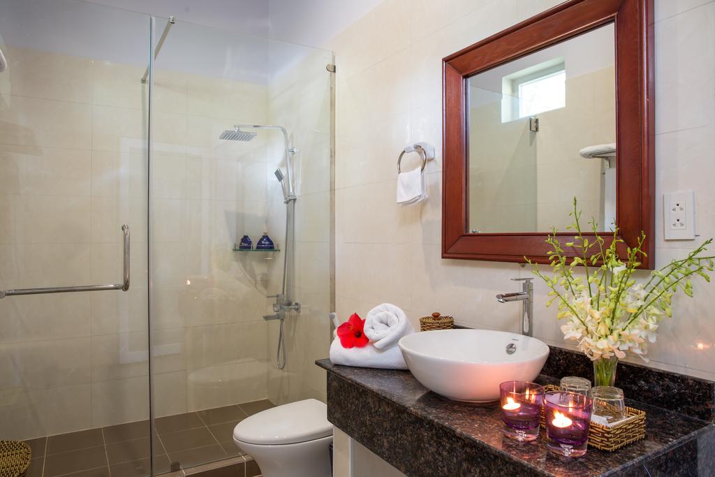 Biệt thự trước biển Ocean với phòng tắm có khu vực rộng rãi với sân hiên riêng.