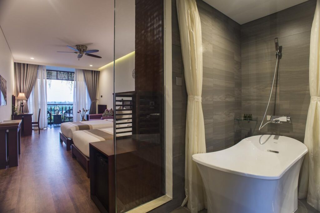 - Junior Suite: diện tích 53m2, có 2 ban công riêng nhìn ra hồ bơi và sông Cổ Cò