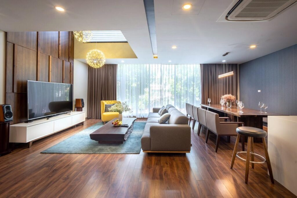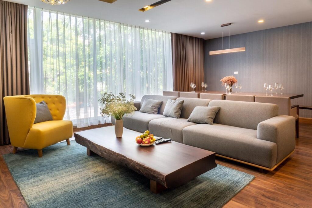 - Bếp, ti vi, tủ lạnh, lò vi sóng, lò nướng, wifi, truyền hình cáp, bàn ghế, giường, nệm…