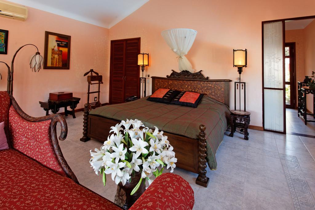 Số lượng villa: 1. Phòng có một giường đôi dành cho hai người. Diện tích villa 185m2.