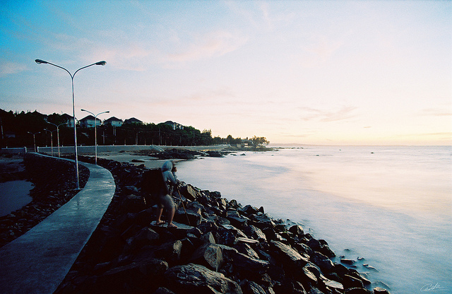 Hè đến, dù không gian ngập trán nắng và gió, biển nơi đây lại thật dịu dàng, như e thẹn với ánh nắng vàng ươm và từng cụm mây trắng lãng đãng trôi đã níu chân nhiều du khách đi ngang. Bởi không chỉ được tận hưởng trọn vẹn hương vị biển mặng nồng từ hàng ghế đá công viên, mà bạn còn có thể thỏa sức vẫy vùng cùng biển biếc, rồi đi dạo chân trần trên bãi cát mịn màng, hay thư giãn với cần câu cá trên tay.