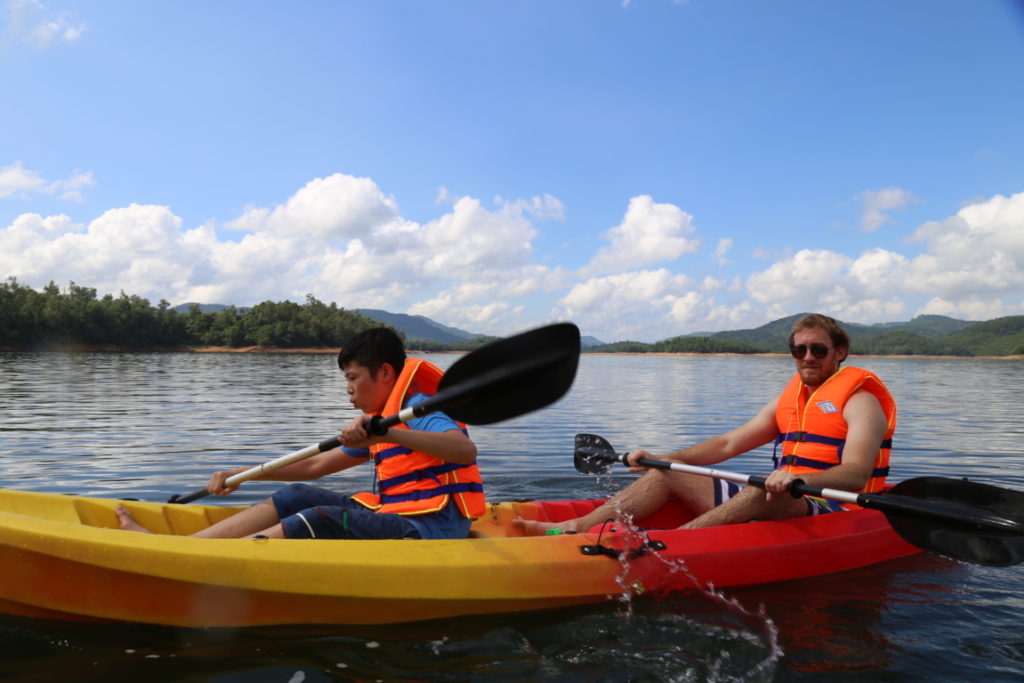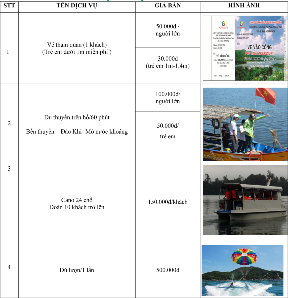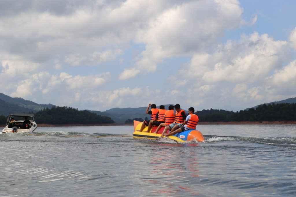 - Các trò chơi cảm giác mạnh: môtô nước lướt Jetski, Chèo thuyền, hồ bơi, dù lượn bay ở độ cao 70-100m, phao chuối trên hồ.