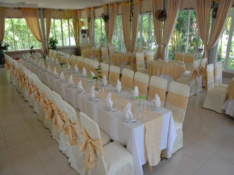 Khu trung tâm hội nghị, nhà hàng với sức chứa trên 200 khách, phục vụ tất cả các hình thức như hội nghị, tiệc họp mặt, tiệc cưới, liên hoan, sinh nhật, … với các đầu bếp chuyên nghiệp và đội ngũ nhân viên chu đáo thân thiện. phục vụ khách hàng với các món ăn dân dã chỉ tại hồ Phú Ninh.