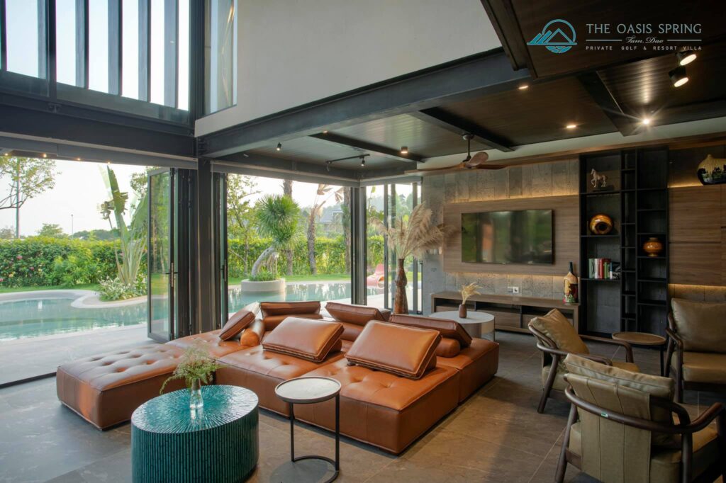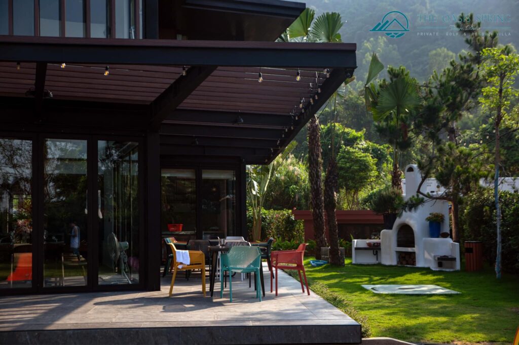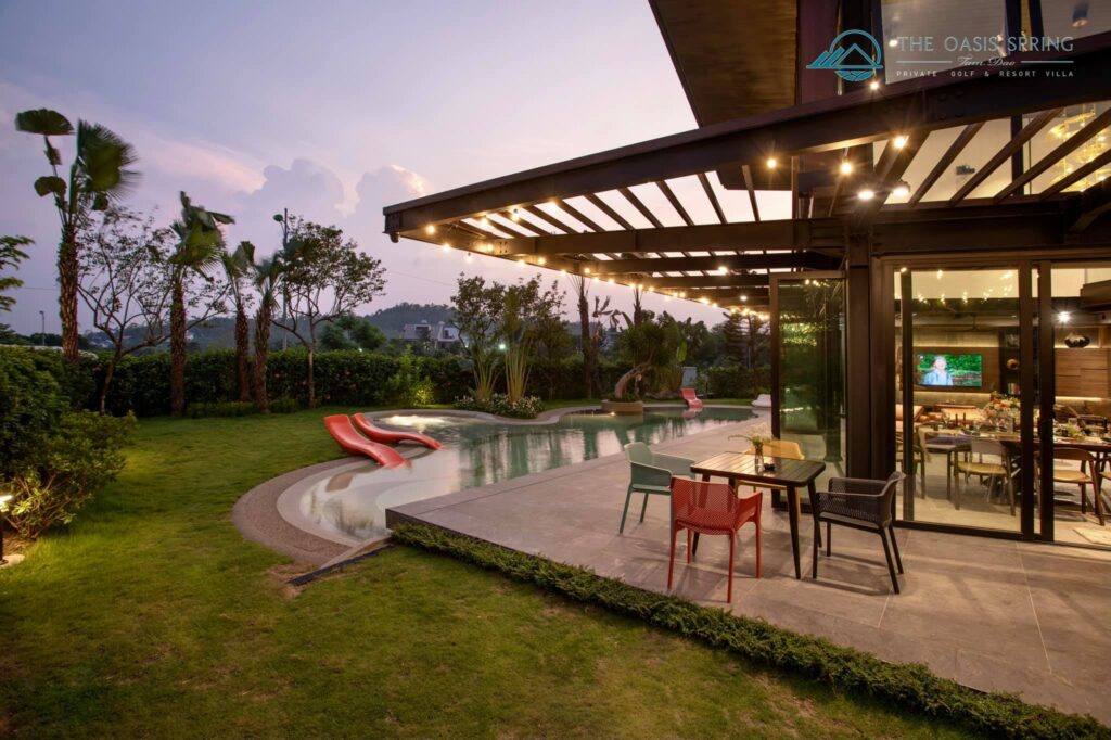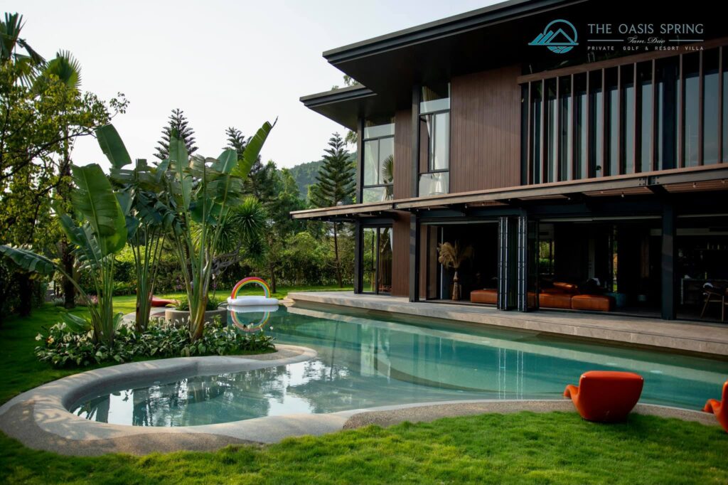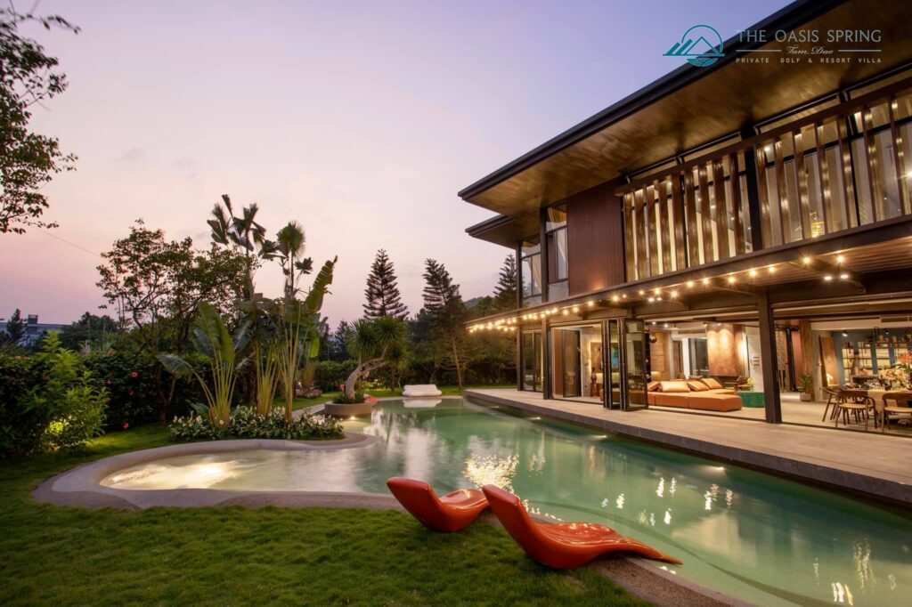 Biệt thự The Oasis Spring Villa Sân Golf Tam Đảo 5 Phòng Ngủ to rộng mới đẹp nhất, bể bơi riêng, bếp, bbq, karaoke cho thuê du lịch nghỉ dưỡng, tổ chức sự kiện, tour trọn gói giá rẻ.