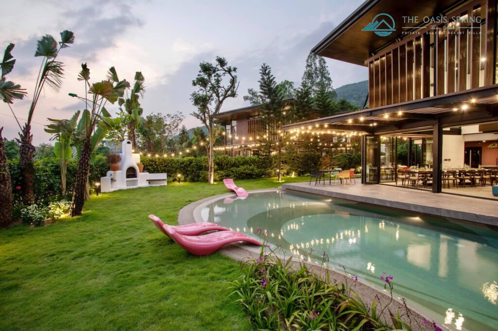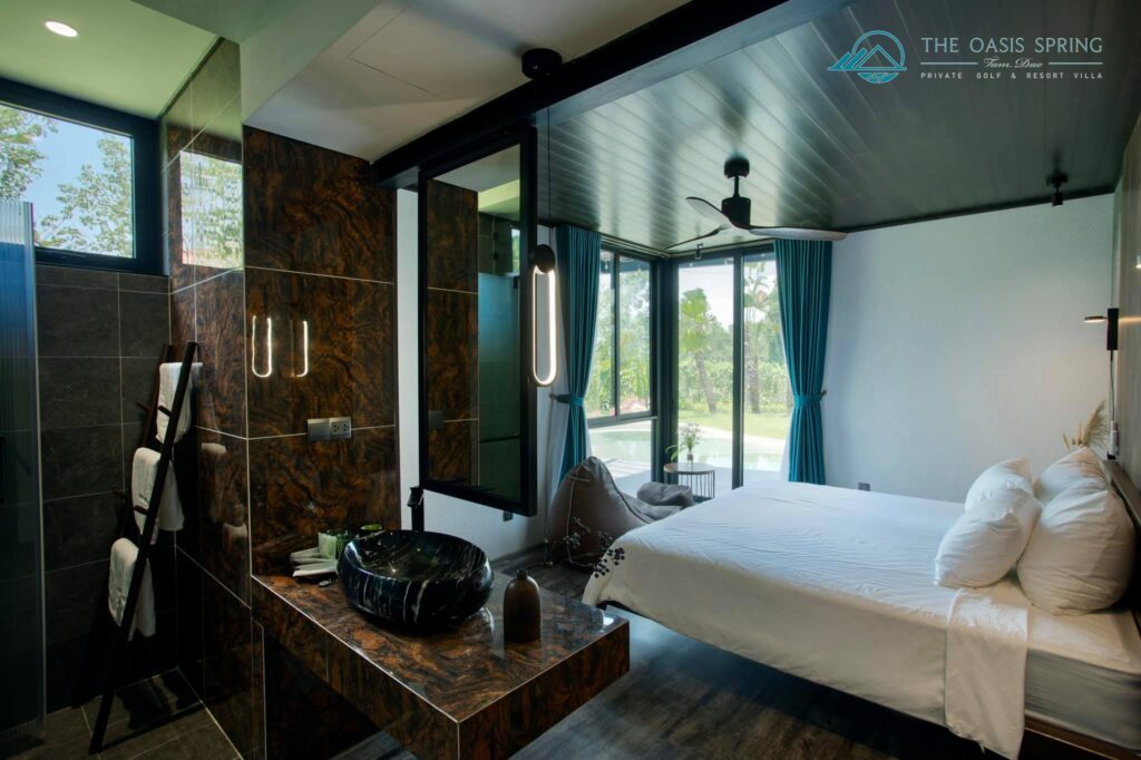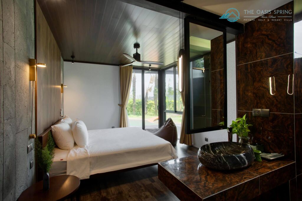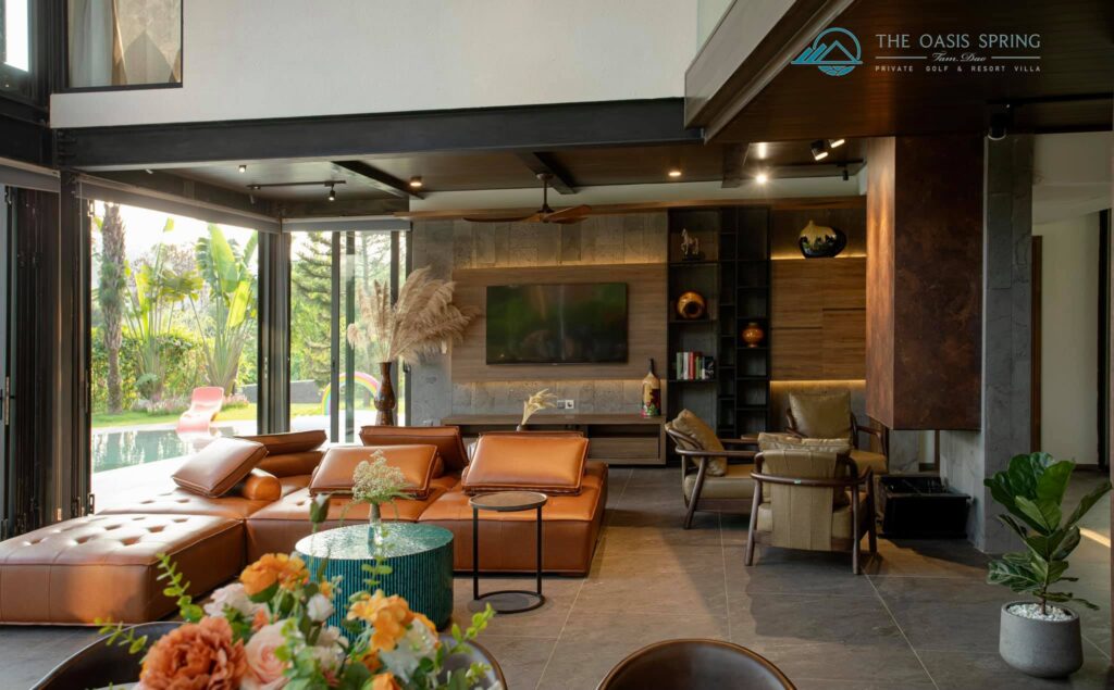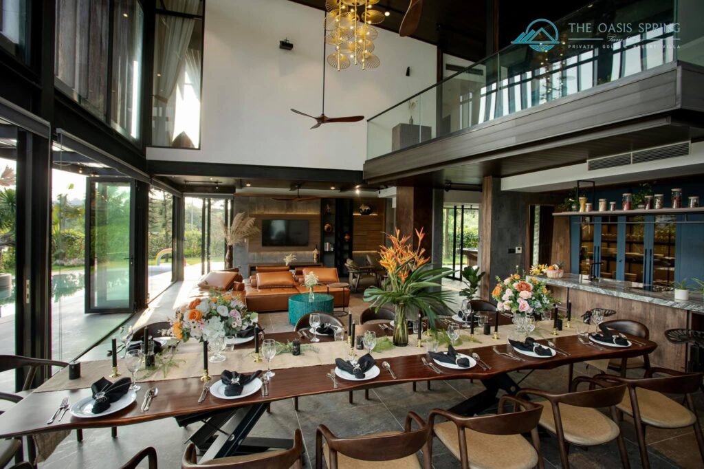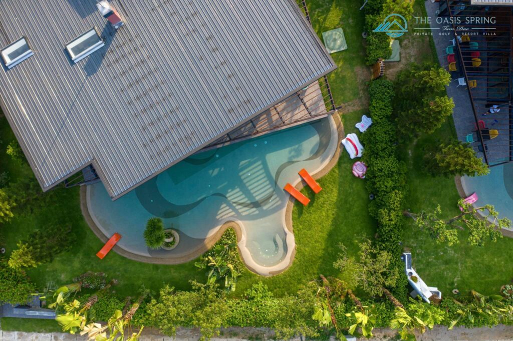 Biệt thự The Oasis Spring Villa Sân Golf Tam Đảo 5 Phòng Ngủ to rộng mới đẹp nhất, bể bơi riêng, bếp, bbq, karaoke cho thuê du lịch nghỉ dưỡng, tổ chức sự kiện, tour trọn gói giá rẻ.
