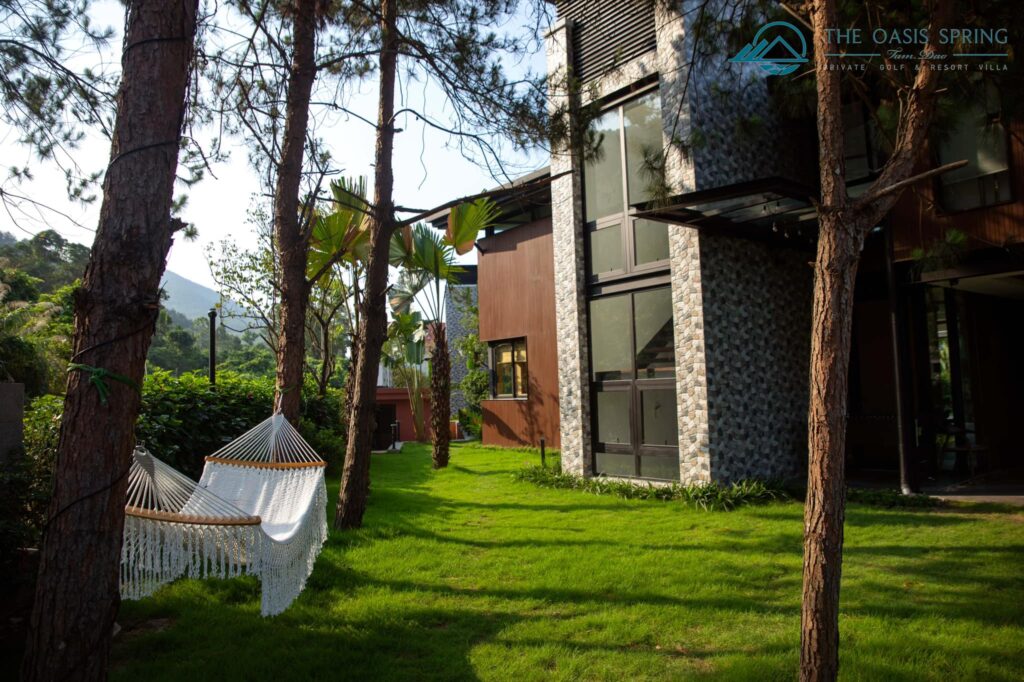 Biệt thự The Oasis Spring Villa Sân Golf Tam Đảo 5 Phòng Ngủ to rộng mới đẹp nhất, có bể bơi riêng, bếp, bbq, karaoke cho thuê du lịch nghỉ dưỡng, tổ chức sự kiện, tour trọn gói gía rẻ.