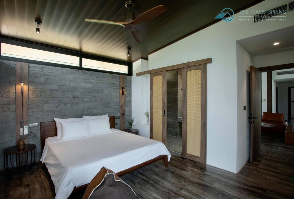 - Mỗi villa bao gồm 5 phòng ngủ riêng biệt, điểm đặc biệt là có thể mở thông 2 villa để nâng số phòng lên 10 phòng đối với khách có nhu cầu.