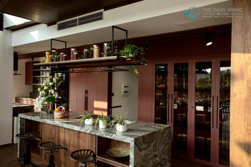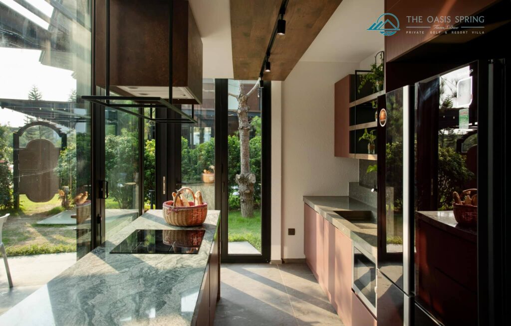 - Đầy đủ đồ bếp, đặc biệt có lò nướng BBQ bằng củi phong cách Ý sẽ khiến trải nghiệm ẩm thực tại villa cực kì thú vị, có dịch vụ nấu nướng dọn dẹp.