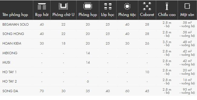 – Các loại phòng hội nghị và sảnh: