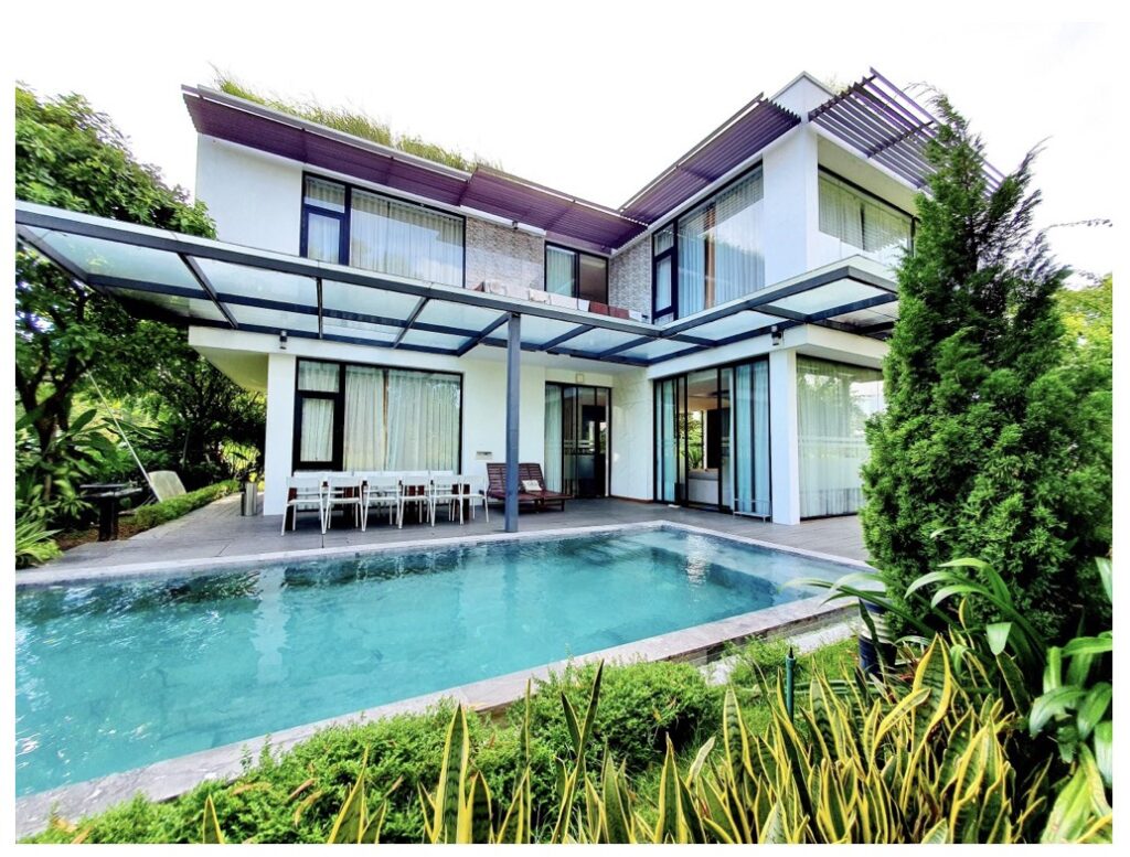 - Bể bơi, bếp Bbq, sân vườn rộng, tổng diện tích sử dụng Villa trên 400m2