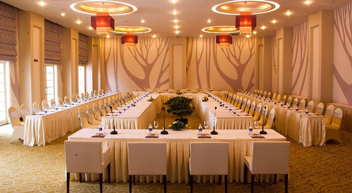 Thiết kế không gian sang trọng theo phong cách bán cổ điển, với gam màu nhu, tao nhã; sảnh hội nghị với sức chứa trên 1000 khách sẽ luôn được chuẩn bị chu đáo và sắp xếp tốt nhất cùng tinh thần phục vụ chuyên nghiệp – tận tình – thân thiện, chắc chắn sẽ mang lại cảm giác vô cùng thoải mái, tạo tinh thần phấn chấn cho người tham dự sự kiện.