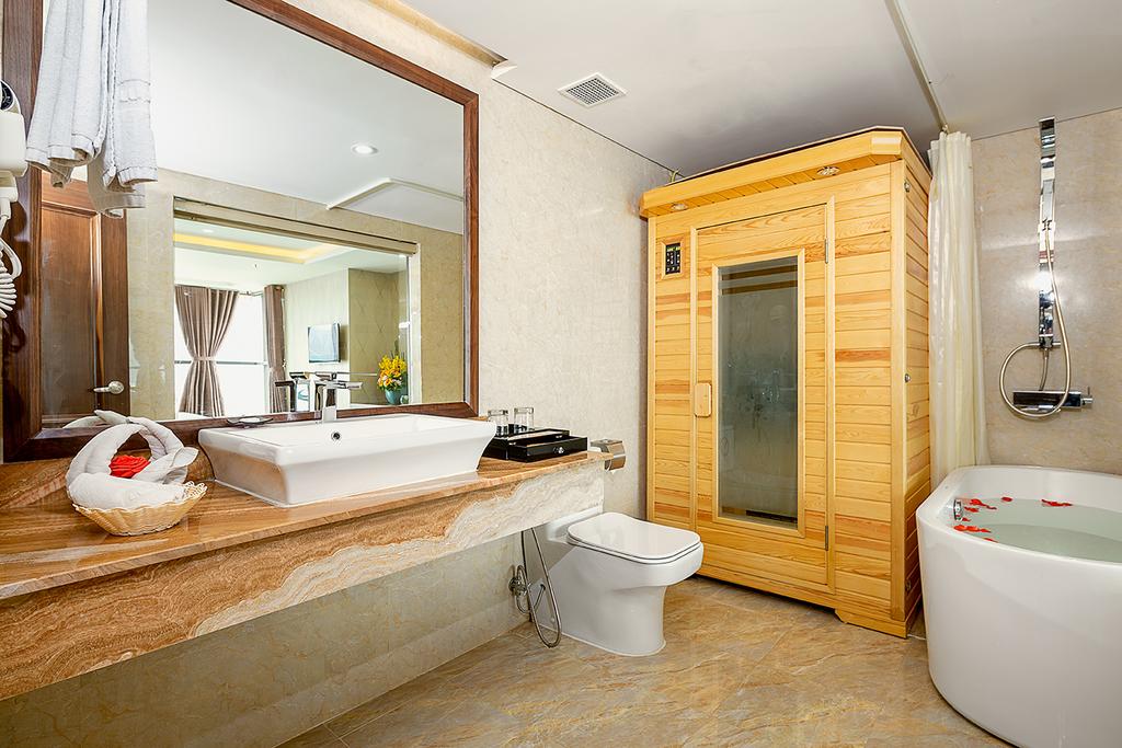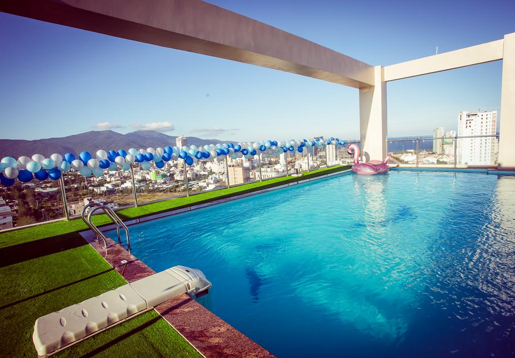 Đặc biệt khách sạn có hệ thống bể bơi vô cực đặt trên tầng thượng xuất hiện như một điểm nhấn bổ sung thêm nét sang trọng mang tầm cỡ quốc tế về công trình kiến trúc trong ngành khách sạn nghỉ dưỡng cao cấp. Hồ bơi với hệ thống lưu thông nước kép gồm một phần đảm nhận lọc và làm nóng trong bể chính, phần còn lại xử lý lọc nước tràn và trả lại về hồ bơi chính. Bạn có thể cảm giác nước trong hồ bơi vô cực dường như rơi xuống mặt đất, thì nó thực sự tràn được đưa vào một khu vực xử lý riêng, vô cùng an toàn và đảm bảo vệ sinh cho người dùng.