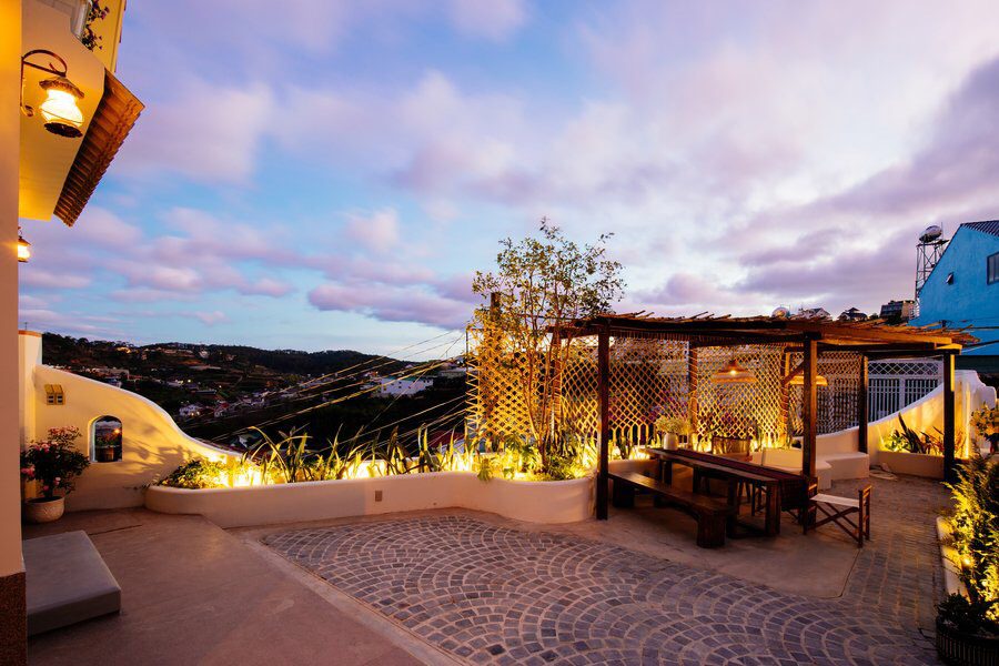 – Bên ngoài là khu sân vườn nhỏ tổ chức BBQ. - Giá 10 triệu/đêm cho 16 khách, đi hơn phụ thu 250k/khách/đêm