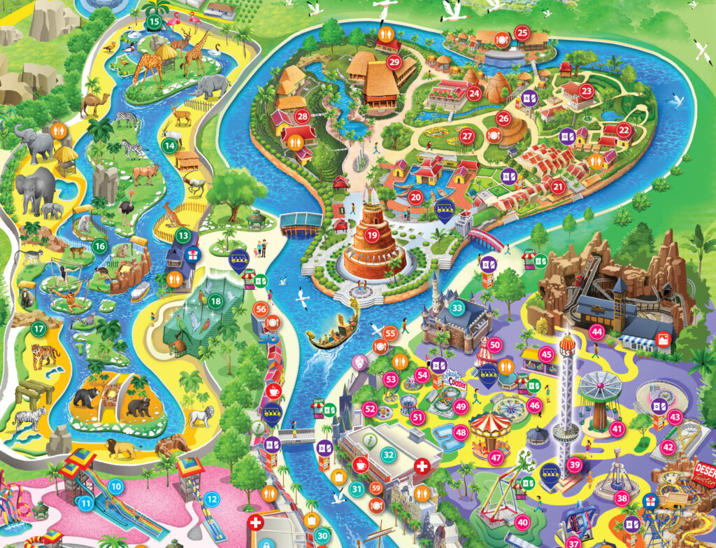 - 09h15: Đoàn đến khu vui chơi giải trí Vinpearl Land Nam Hội An, nhận vé vào cổng, tham quan Bến Cảng Giao Thoa, Đại Lộ Giấc, mô hình Thành Cổ Loa, tham quan khu Vinpearl River Safari – công viên động vật. Đến với Vinpearl River Safari, du khách sẽ cảm nhận như đang ngồi giữa dòng Amazon huyền thoại