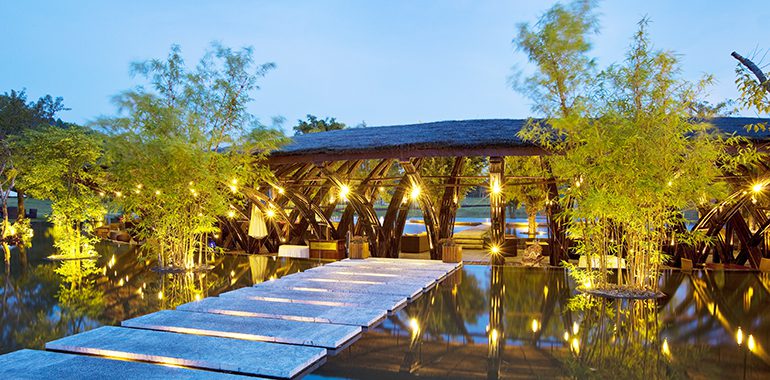 Niềm tự hào của kiến trúc Việt với nhiều giải thưởng thế giới – nhà hàng Bamboo Wings phục vụ đa dạng ẩm thực Châu Á trong không gian thoáng mở, lắng đọng vẻ đẹp của gió, nước, cây xanh và đồi cỏ nghệ thuật.