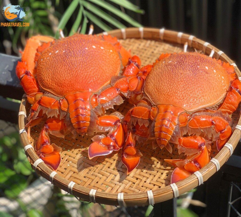 - Cua huỳnh đế: Ai cũng biết cua huỳnh đế có giá khá cao, từ 1-2 triệu/kg tùy là cua ngộp hay là cua còn sống. Tuy nhiên, bạn có thể thưởng thức món cua này ngay tại Mũi Né với giá khá là rẻ, chỉ dưới 1 triệu/kg, may mắn mua được chỗ rẻ thì chỉ 400-500k/kg thôi. Cua huỳnh đế bạn biết độ ngon như thế nào rồi, thịt ngọt, gạch cua béo ngậy và nhiều dinh dưỡng.