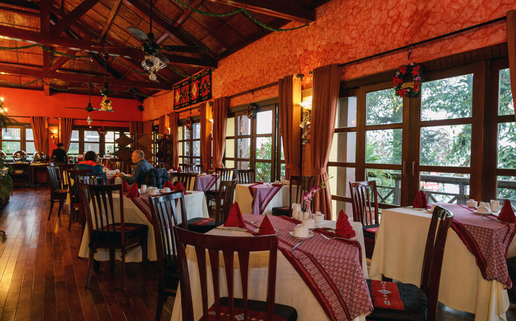 • Nhà hàng Tả Van ấm cúng phục vụ các món ăn phương Tây và Việt Nam. Nhà hàng nổi bật với hướng nhìn ra đỉnh Fansipan hùng vĩ. Trần cao, ánh đèn cổ điển và xà gỗ góp phần tô điểm không gian của nhà hàng.