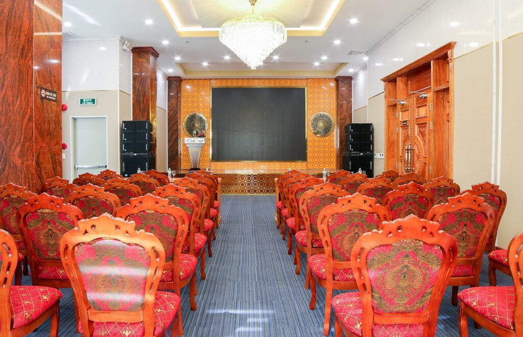 Phòng hội nghị/ họp của khách sạn cung cấp đầy đủ các thiết bị hiện đại trong không gian rộng rãi. Đây là sự lựa chọn hàng đầu cho những buổi họp, hội thảo hay tổ chức sự kiện của khách hàng khi đến Quy Nhơn.