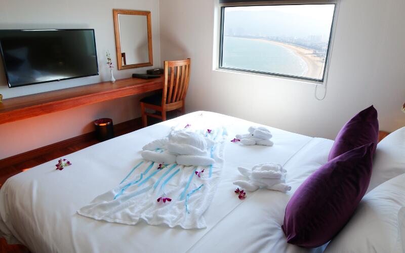 Khách sạn bao gồm 111 phòng từ tiêu chuẩn đến phòng hạng sang trực diện biển. Tất cả các phòng đều được sắp xếp hài hòa, khai thác tối đa view biển nhất có thể để đem đến du khách những trải nghiệm tuyệt vời của nắng, gió và hương vị trong lành nơi thành phố biển Quy Nhơn xinh đẹp.