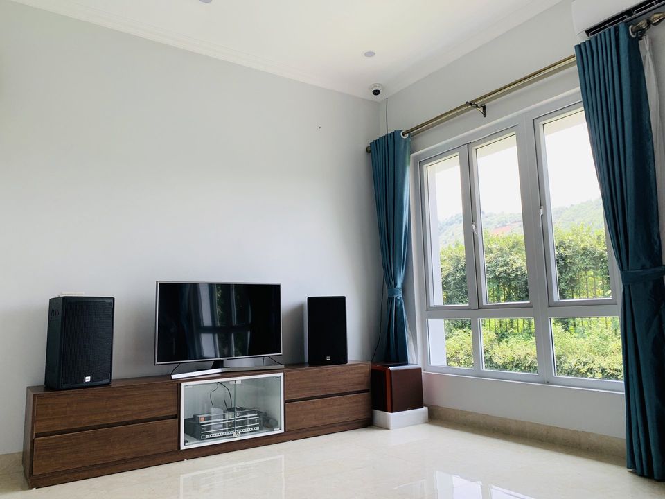 • Phòng khách rộng rãi với bộ sofa thư giãn , hệ thống karaoke hiện đại